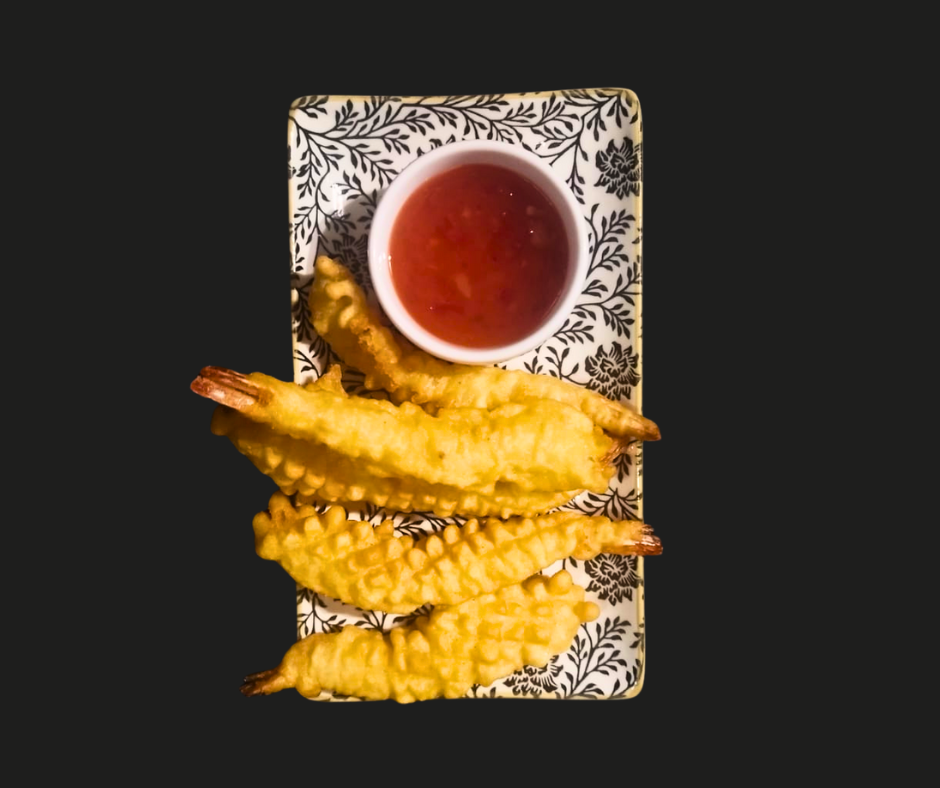 Z krewetkami w tempurze. -