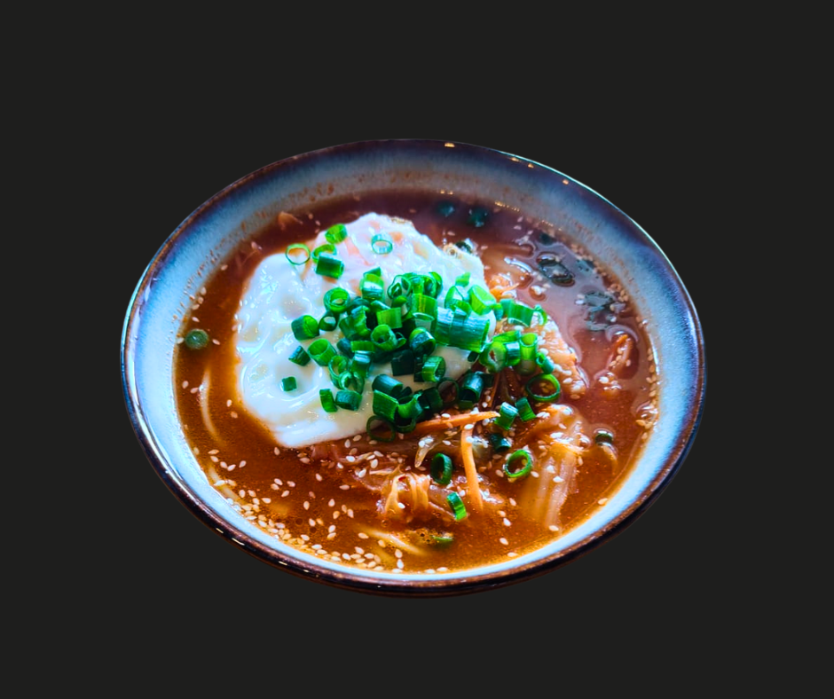 Łagodna zupa kokosowa z galangalem podawana z boczniakami, cebulą i świeżą kolendrą.